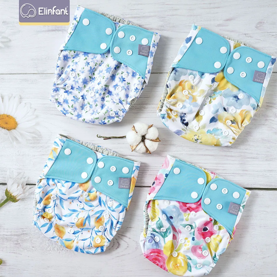 Экологически чистый моющийся подгузник Elinfant, серая сетчатая ткань, 4 шт., Регулируемый многоразовый подгузники с карманами