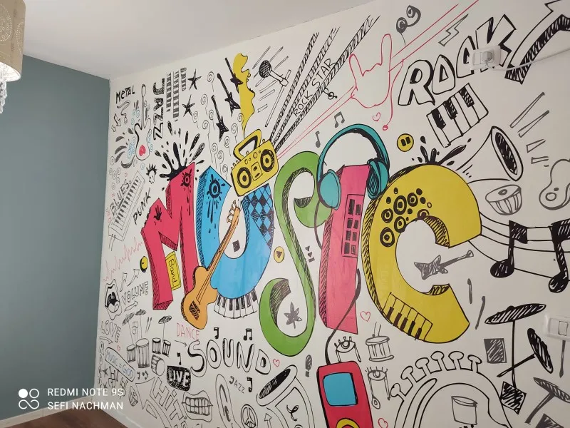 Настенная роспись на заказ, креативное граффити, искусство, музыка,...