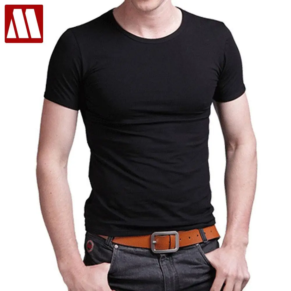 Футболка стрейчевая мужская с круглым вырезом, Повседневная приталенная тенниска с короткими рукавами, топ из хлопка, S-5XL