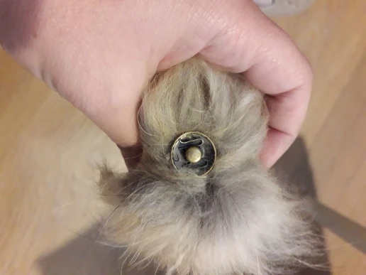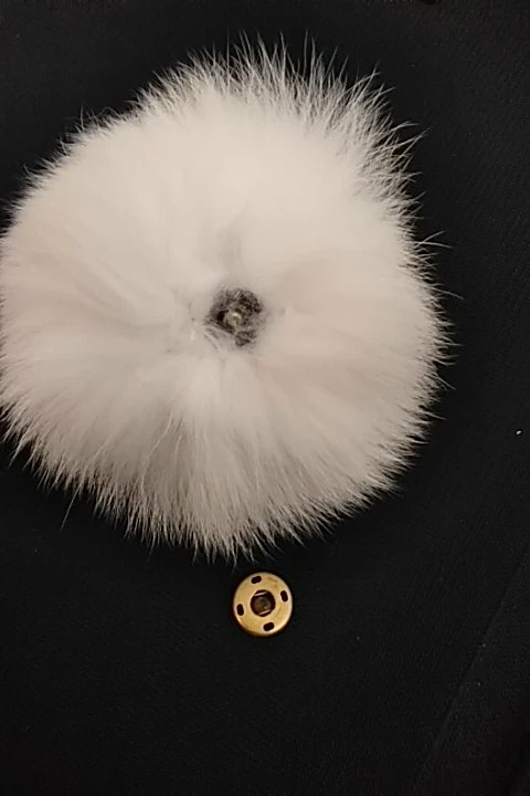 Очень качественный, большой и пушистый натуральный помпон. В комплекте сразу приходит с кнопкой для пришивания. Пришло недели за 3