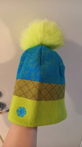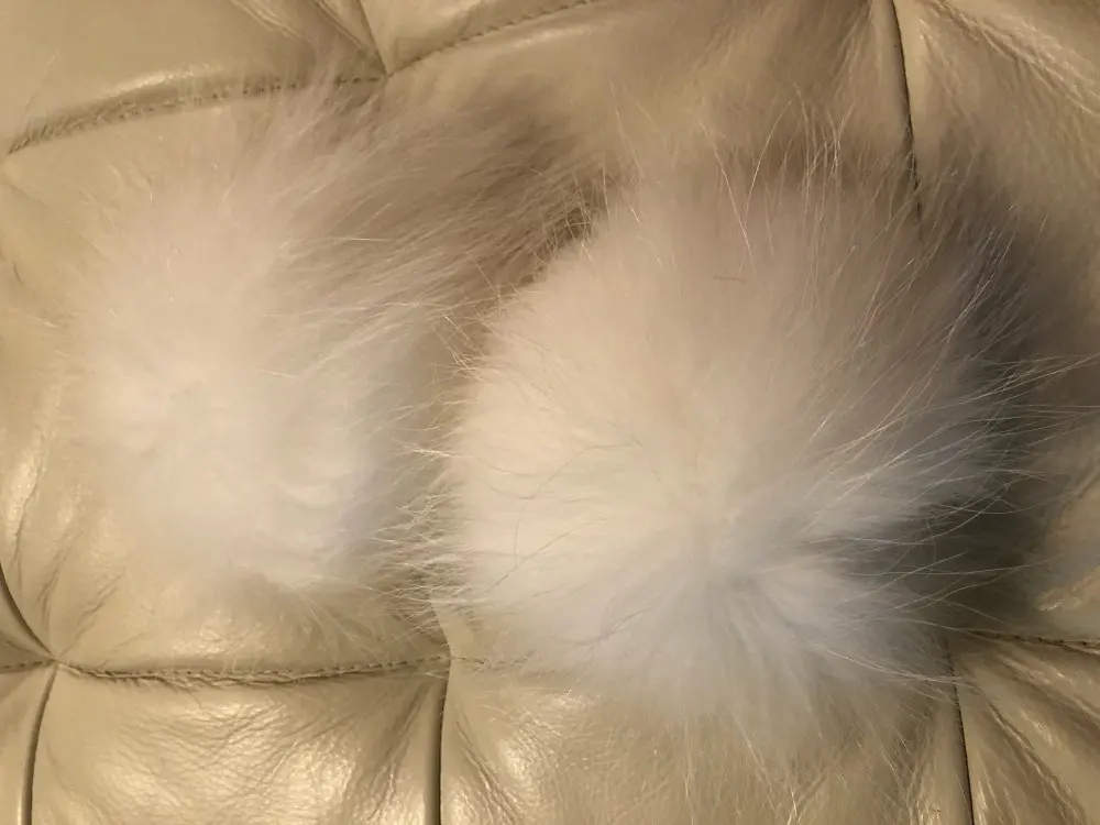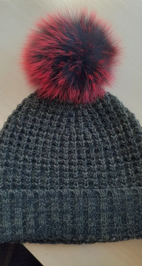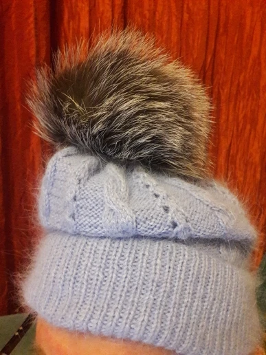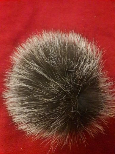 Помпон изготовлен из натурального меха, но он не имеет формы и имеет лыжные пятна.