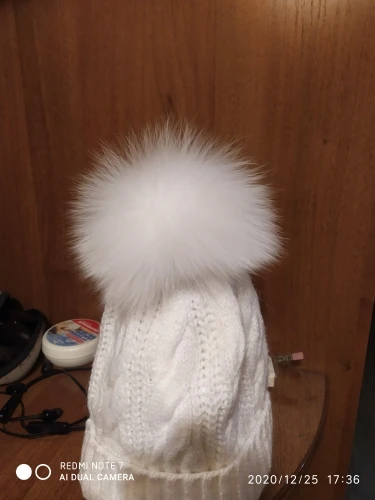 очень долгая доставка . помпон хороший , плотный , пушистый, качество очень хорошее , не синтетика , с кнопкой .покупкой довольна ! спасибо продавцу !