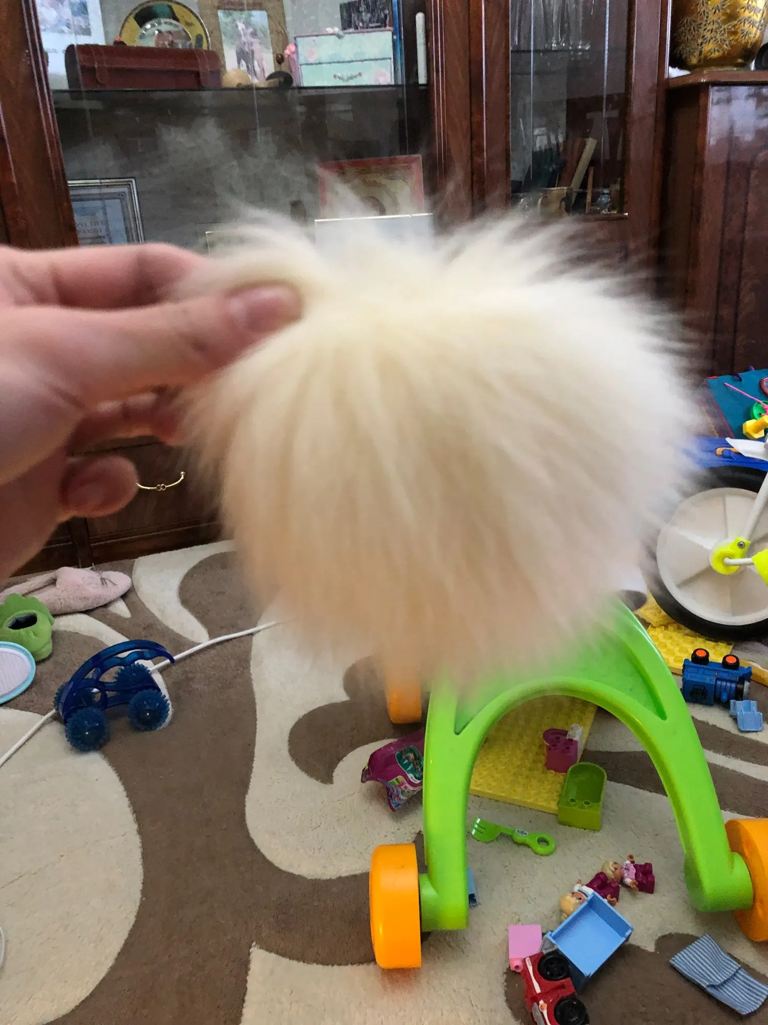 Я только что получил свой супер пушистый помпон. Мне нравится! Нужно получить больше информации. Пришло через месяц. Оплатил листинг 21 декабря и прибыл сегодня 20 января. Помпон был в пузырчатом конверте. Поэтому он не был поврежден. Вот несколько фотографий, чтобы вы могли увидеть, как это действительно трудно описать. Вам нужно увидеть его и прикоснуться к нему. Большое спасибо за отличный помпон!