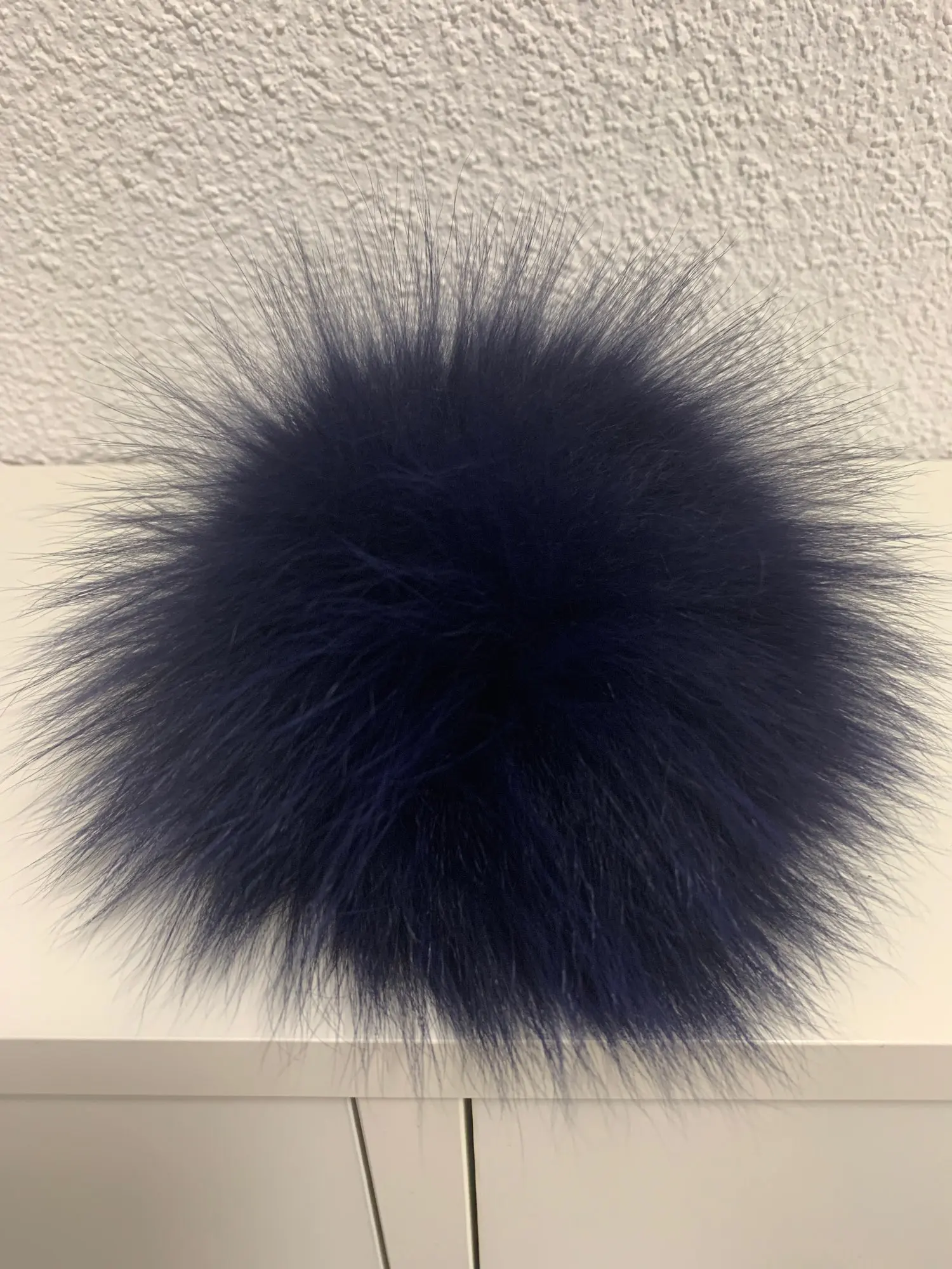 Помпон классный! Красивый, плотный, из натурального меха. Цвет чёрный (без синевы, зелени или серости). В диаметре уверенные 14 см наберутся. Вшита кнопочка, вторая часть которой должна пришиваться на то изделие, куда планируете приделывать помпон. Все супер! Спасибо продавцу за качественный товар и быструю доставку ;)