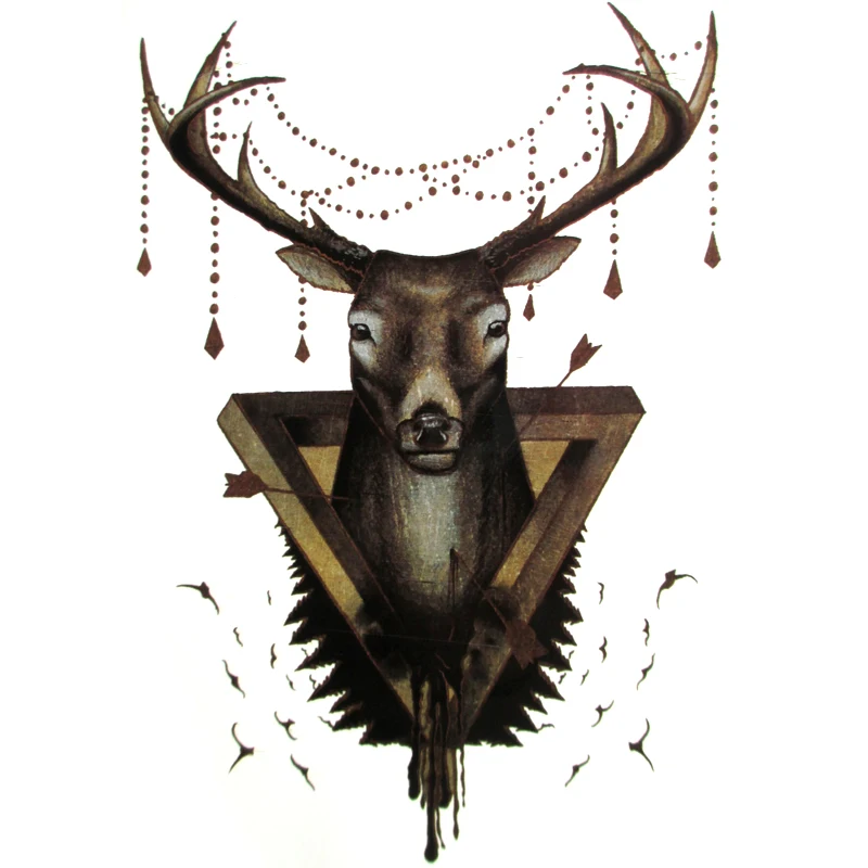 Водонепроницаемая временная татуировка для мужчин, олень, хна, тату для мужчин, животное, вспышка, тату, наклейка, ложная татуировка, рукав