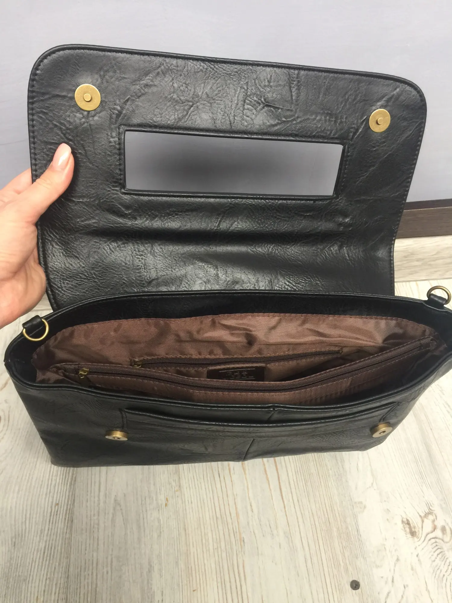 Сумка - моя новая любовь! Пришла в пластиковом пакете, внутри была упакована в пыльник. Отличного качества товар. Сумка хорошо держит форму. Швы ровные, подкладка не шуршит, кожа на ощупь как натуральная : мягкая, гладкая, будто маслянистая. Смотрится очень стильно. Носить можно и через плечо, и как клатч. Обязательно приобрету ещё что-нибудь у этого продавца. P. S. Заказывала 13.11, получила 26.11