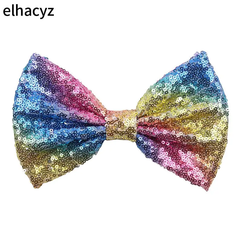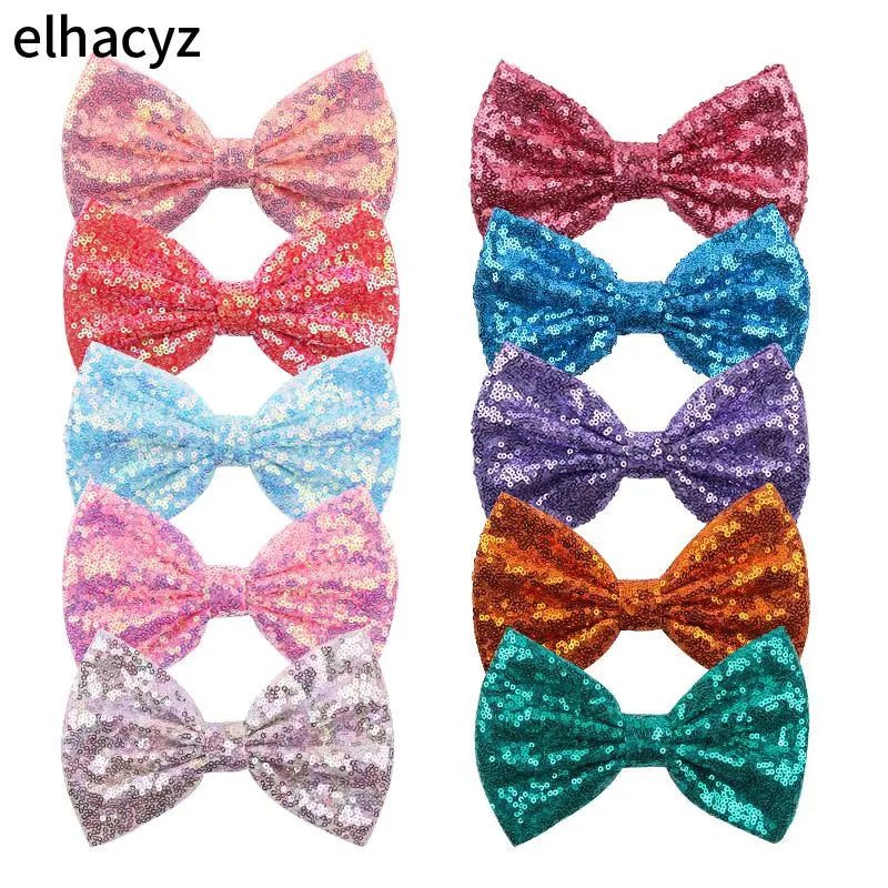 Повязка для волос с бантом и пайетками, большой бант с пайетками, 7 дюймов, 54 цвета, 10 шт.лот, аксессуары для волос