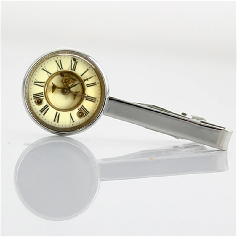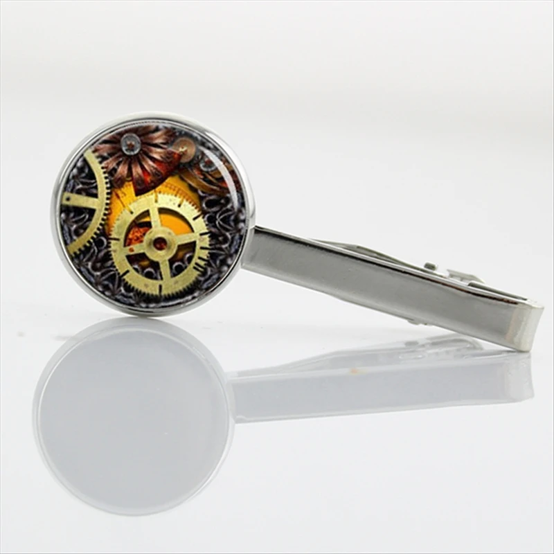 Machines Golden Gears image Steampunk Men Tie Clips Clock Movement Picture Tie Pin Sailing Compass image Necktie Clips Bar T290