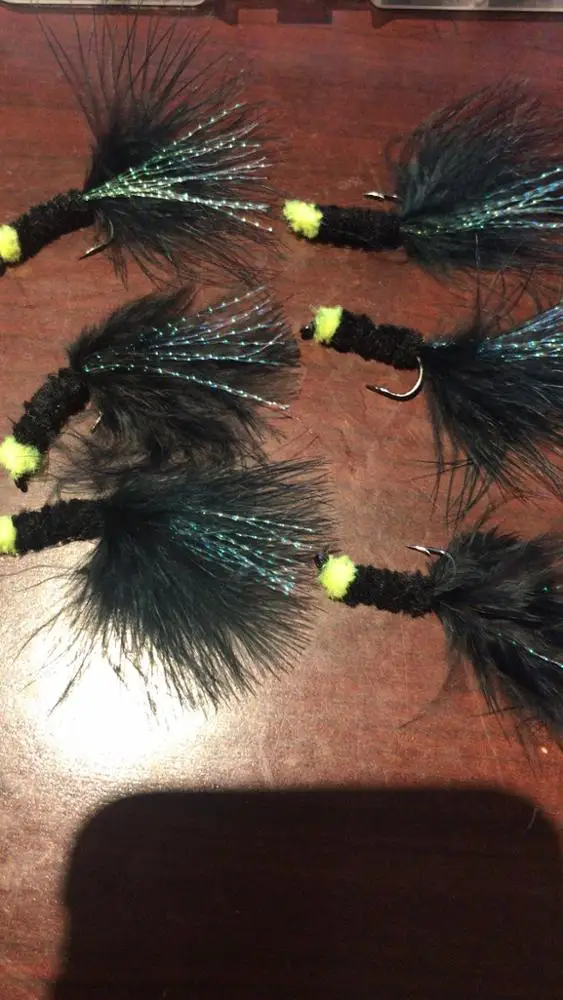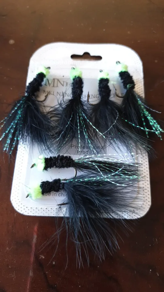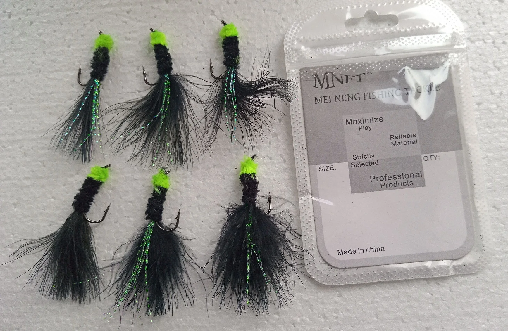 MNFT, 6 шт., 6 #, черное яйцо, пиявка, муха, желтая голова, марабу, стример для ловли форели