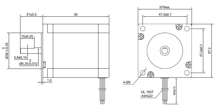Этот биполярный Nema 23 шаговый двигатель с 1,8 ° угол поворота (200 шагов/революция). Каждая фаза составляет 2,8а, что позволяет удерживать крутящий момент 1,26 нм (178,5 унций).