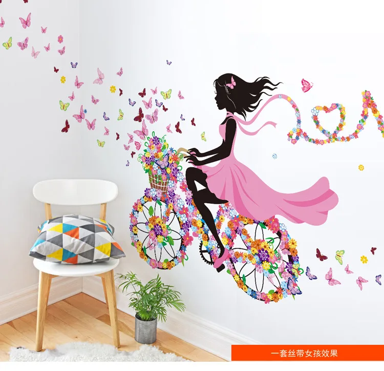 DIY Наклейка на стену, домашний декор, розовая принцесса, езда на велосипеде, девушка, наклейка на стену, девушка, спальня, гостиная, Декор, фоновый декор, украшение