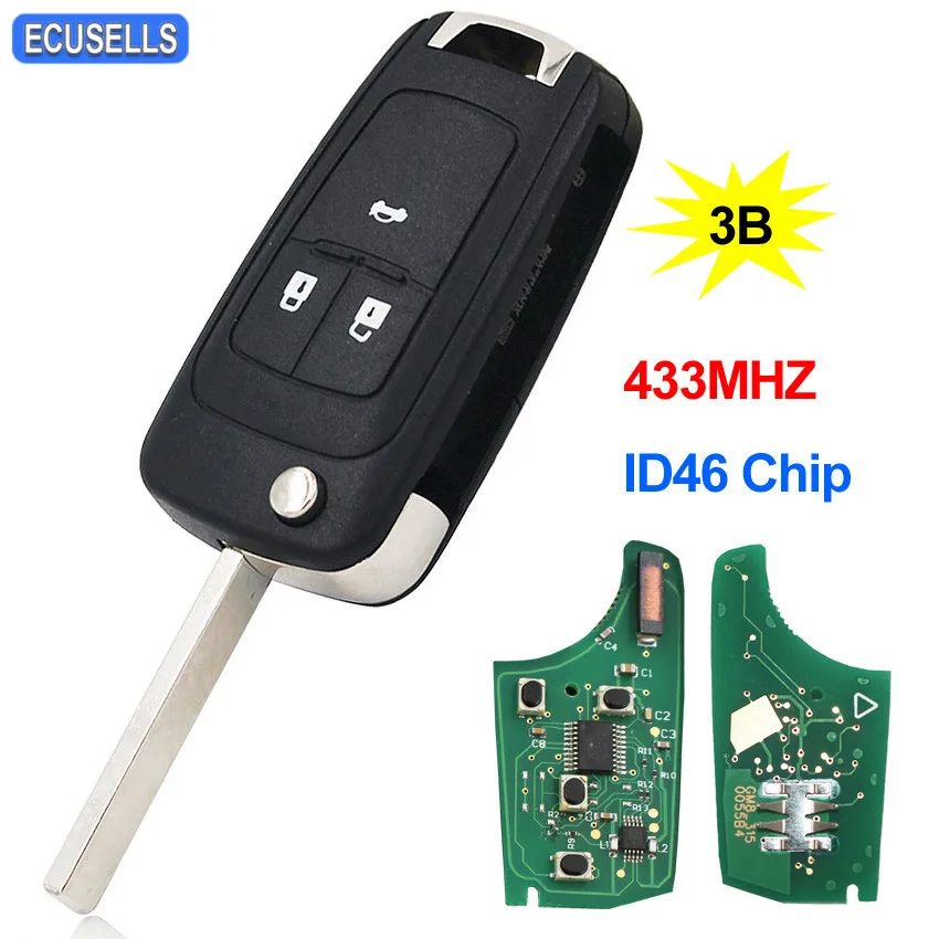 3 кнопки флип полный ключ умный Автомобильный ключ складной дистанционный ключ для Cruze Aveo Orlando 433 МГц ID46 чип Uncut Blade