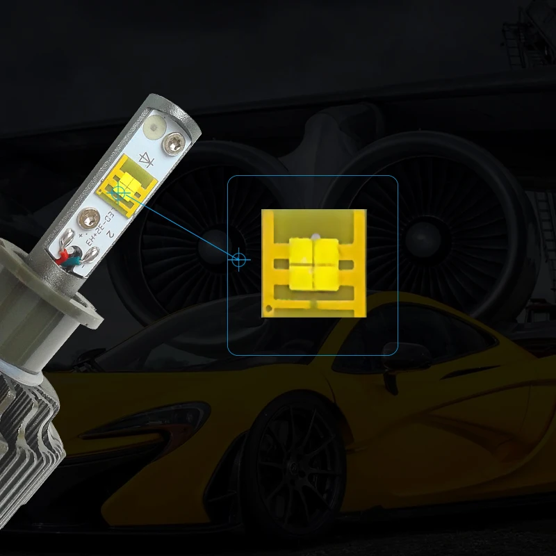Лампы H1, H3, 880 модельное освещение изготовлены из 2 частей по индивидуальному заказу. Светодиодные чипы плоской подсветки mkr на каждой лампе.