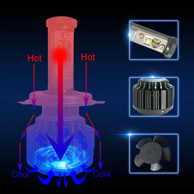 Лампы H4, 9004, 9007, H13 модельное освещение изготовлены из 4 индивидуальных светодиодных чипов XML2 на каждую лампу.