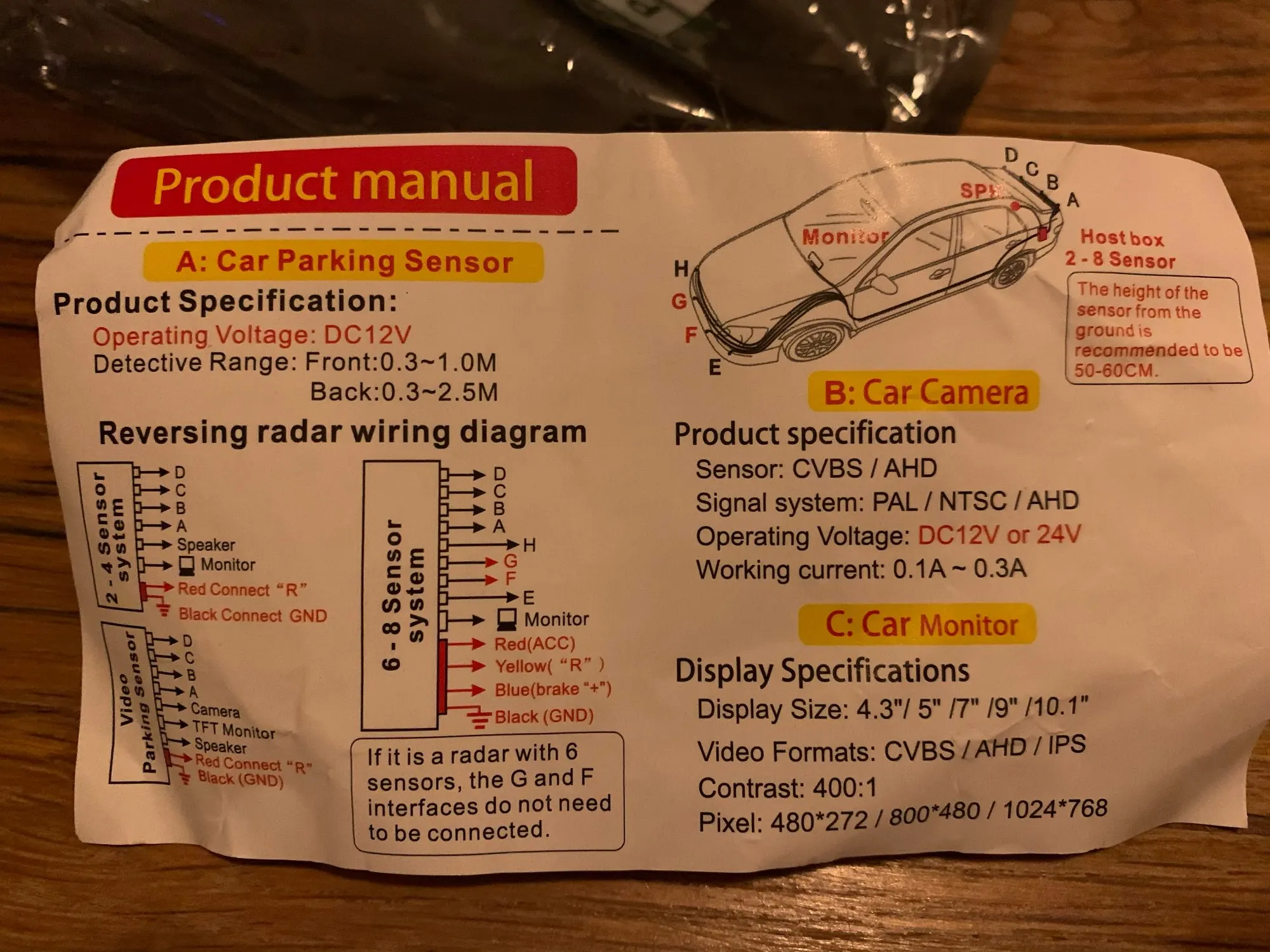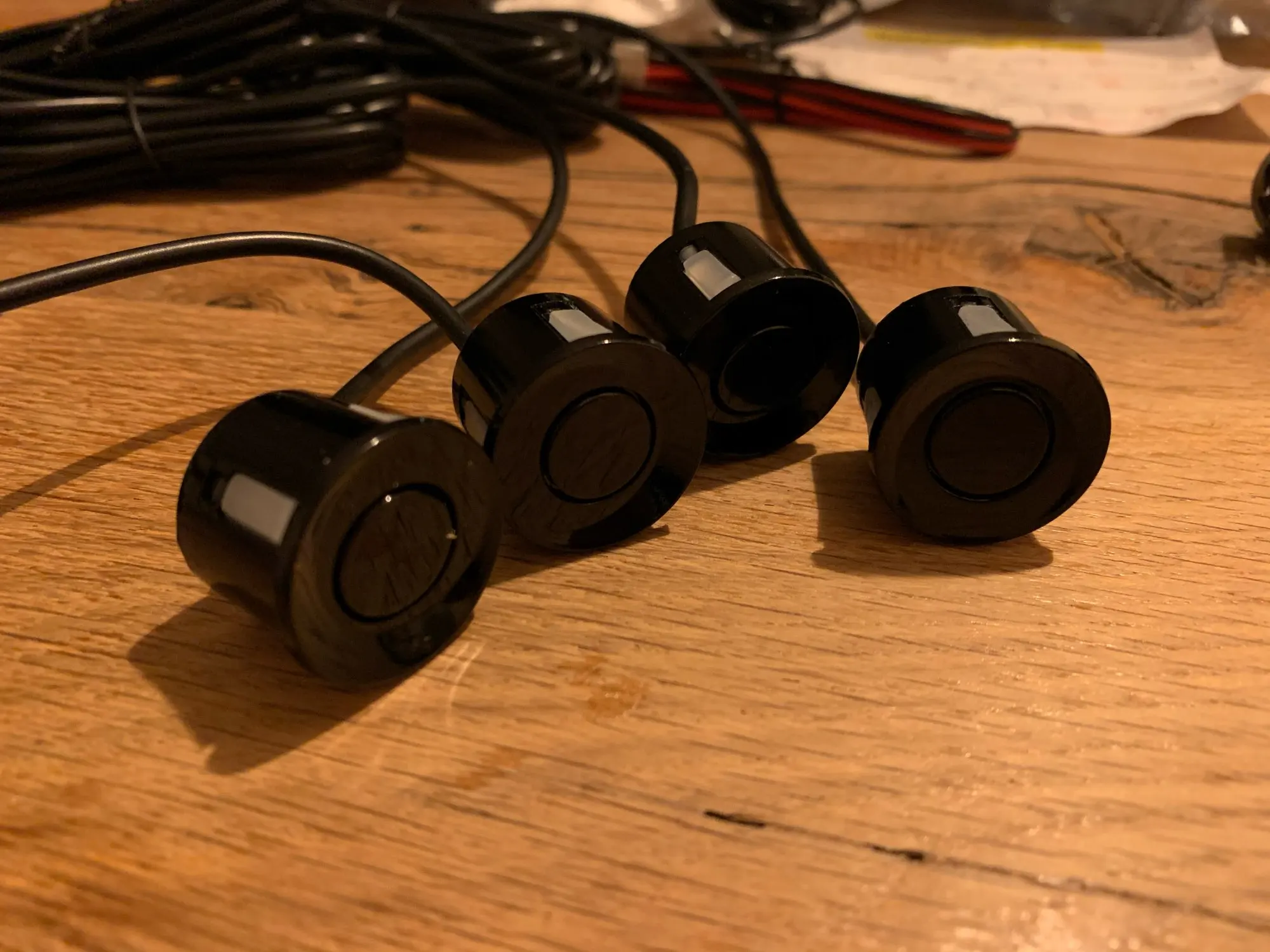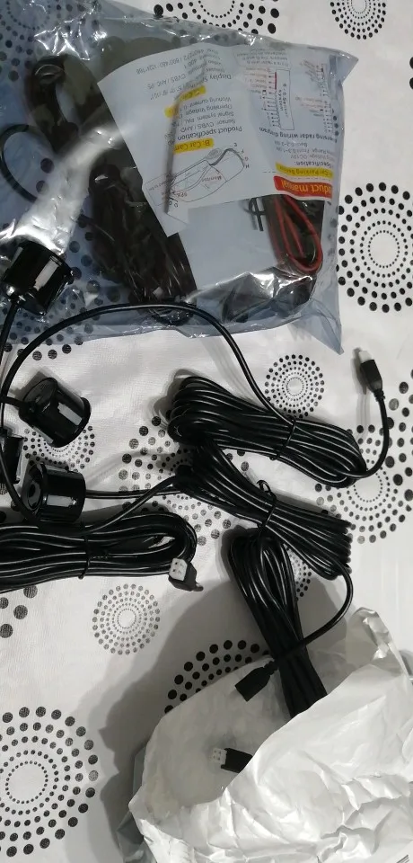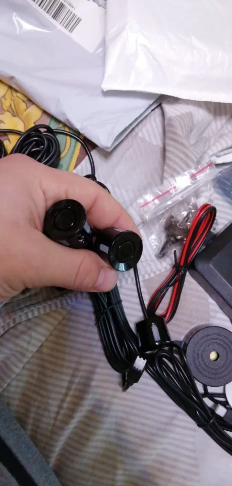 Товар был в пути достаточно долго: больше месяца. При чем, основное время был со статусом "передано в международную почту" или как-то так. В остальном, все неплохо за свои деньги. Ожидать чего-то большего было бы неправильно. Тоненькие алюминиевые провода питания, но, надеюсь, это никак и ни на что не повлияет. Радар хорошо видит преграды перед собой (например, машины), но высокие бордюры уже не попадают в его поле видения: слишком низко. На Ютуб выложил короткий ролик с примером моей реализации под названием: "Работа установленных парктроников заказанных с АлиЭкспресс".