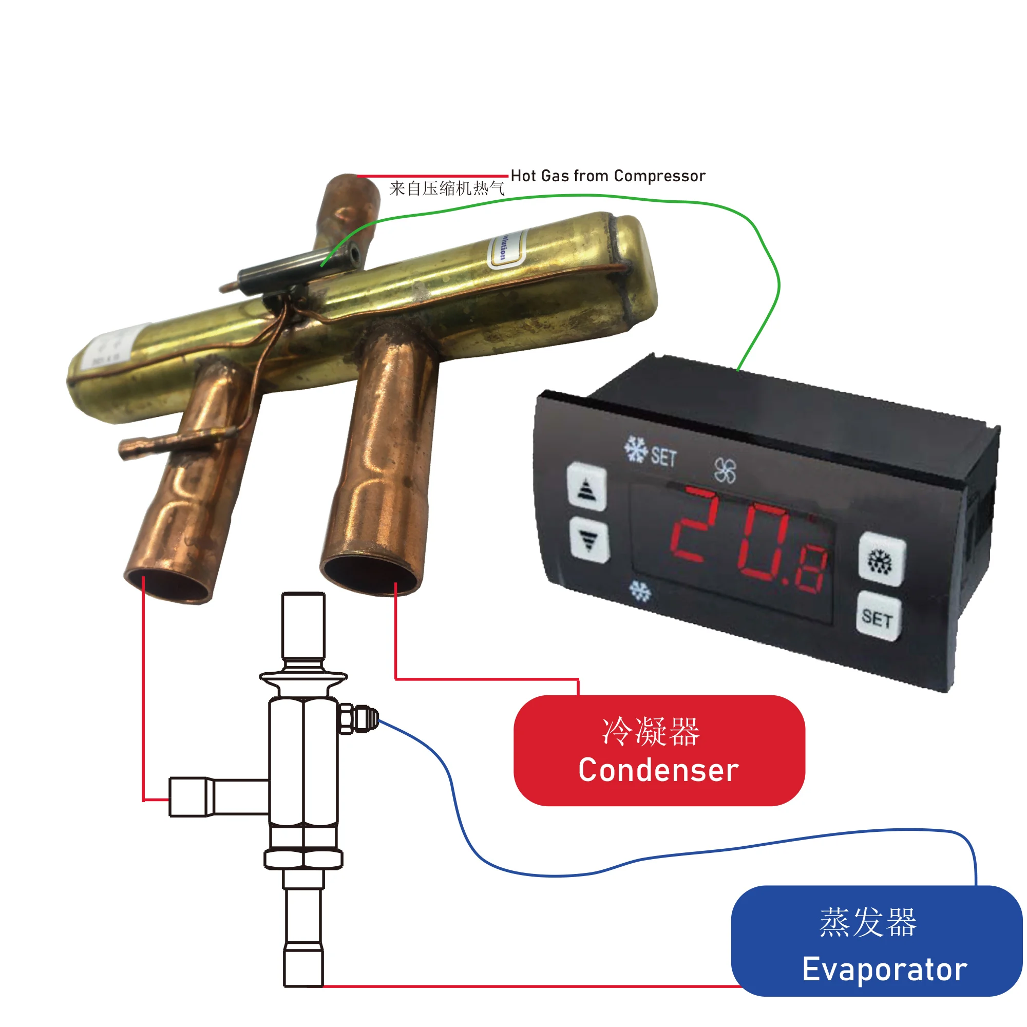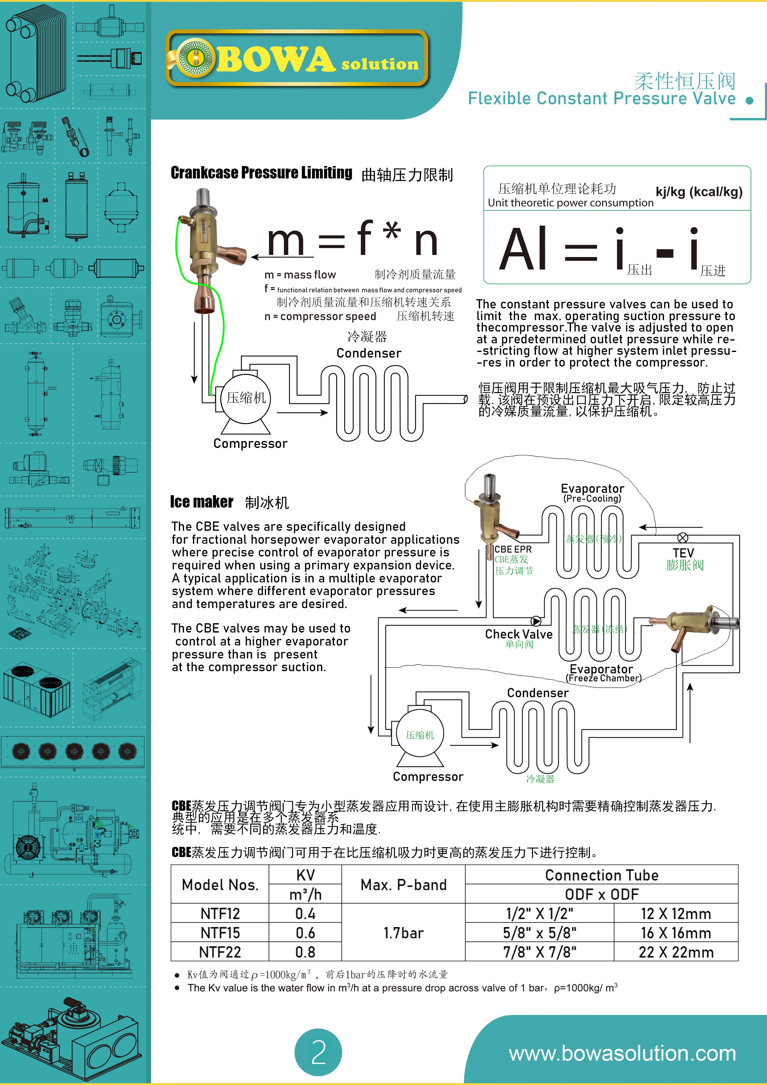 Клапан постоянного давления является жизненно важным компонентом многих систем охлаждения и кондиционера. Он автоматически измеряет хладагент к испарителю со скоростью, равной емкости компрессора. Клапан постоянного давления содержит диафрагму, контрольную пружину, седло и клапан иглы или шар. Контрольная пружина, над диафрагмой, перемещает диафрагму вниз. Это позволяет открыть клапан. Противоположная сила обеспечивается низким боковым давлением испарителя и постоянной силой пружины тела. Это закрывает клапан. Во время цикла выключения давление испарителя создает и преодолевает давление пружины. Это удерживает клапан закрытым до следующего цикла. В начале цикла компрессор быстро снижает давление испарителя. Когда это давление соответствует давлению контрольной пружины, клапан начинает открываться. Клапан открывается, когда давление испарителя ниже контрольной пружинной настройки давления. Это точка открытия клапана или установка. Для растений с одним впрыскиваемым испарителем и без дистрибьютора, таких как кондиционеры, осушители воздуха, осушители воздуха, охладители воды или машины для производства льда. Подходит для всех видов ХФУ, ГХФУ, ГФУ, а не для аммиака. Клапаны могут быть установлены в любом положении.