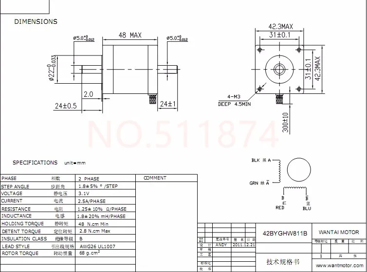 Шаговый двигатель Wantai Nema17 42BYGHM809, 0,9 градусов, г-см, 48 ...