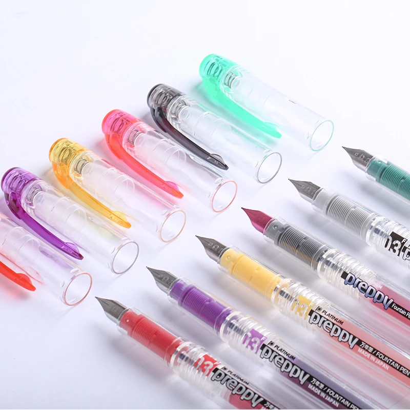 Platinum Preppy, как Pilot Petit1, представляет собой компактную авторучку, доступную в различных цветах чернил. Наконечник из нержавеющей стали цветной, чтобы соответствовать цвету чернил. Он многоразового использования с картриджами и изготовлен из 40% переработанного пластика (как зеленый!) Примечание:
