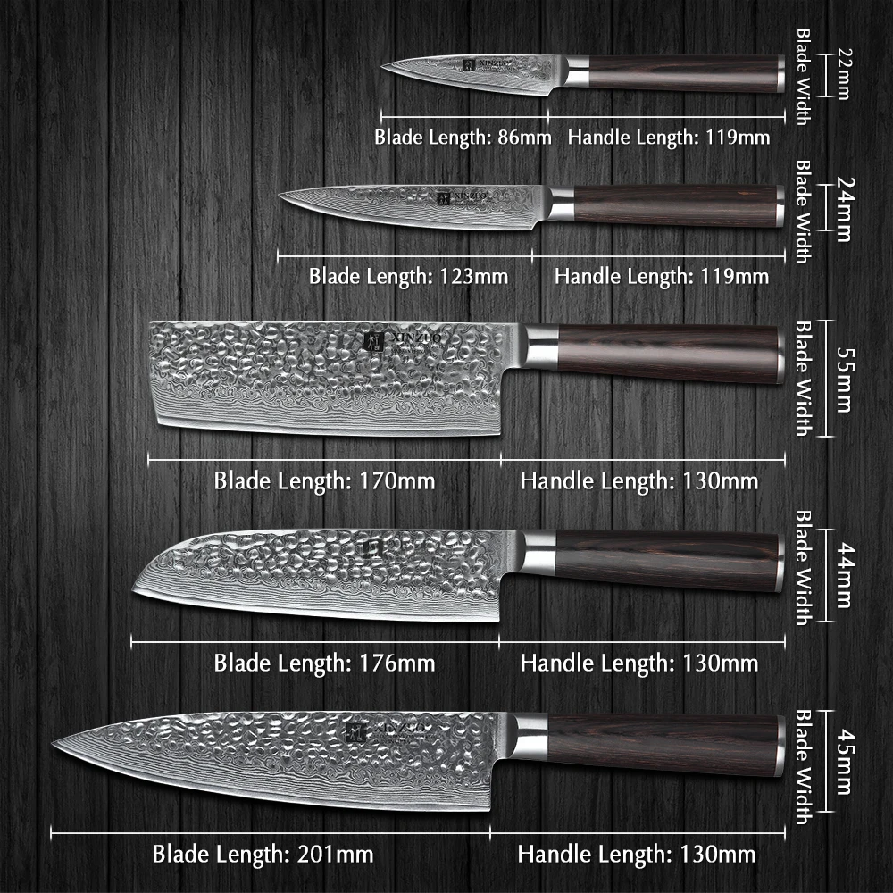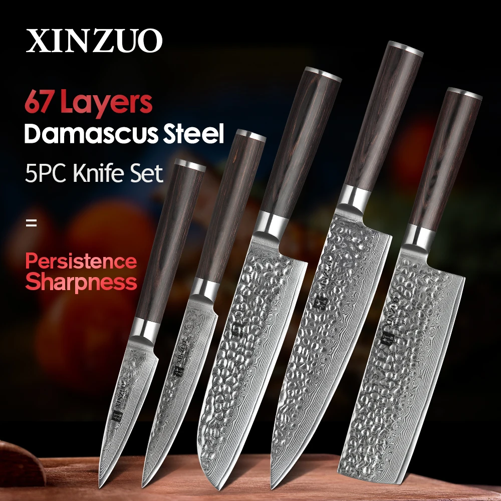 XINZUO 5 шт. кухонные ножи набор японский Дамаск нержавеющая сталь новый дизайн нож Кливер ножи накири нож с ручкой Pakkawood