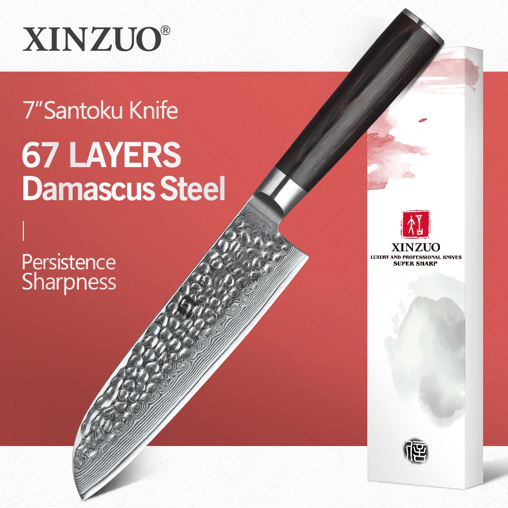 Нож XINZUO из дамасской стали, 7 дюймов, нержавеющая сталь, сантоку