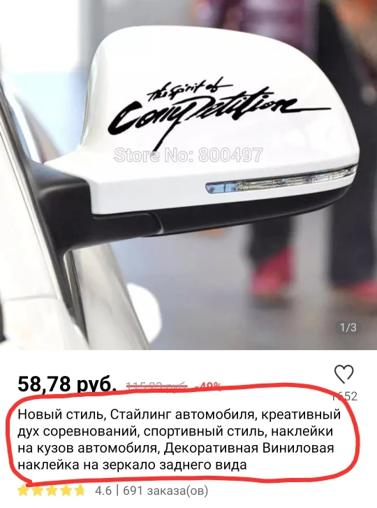 задержка с отправкой, товар не отслеживался, пришла одна наклейка, в описании было указано на 1 экземпляр, но моя не внимательность меня подвела. Уважаемый продавец если в вашей стране машины ездят с одним боковым зеркалом заднего вида, то во многоуважаемой России на автомобилях установлены стандартные два, поэтому вкладывайте стандартно 2 наклейки.