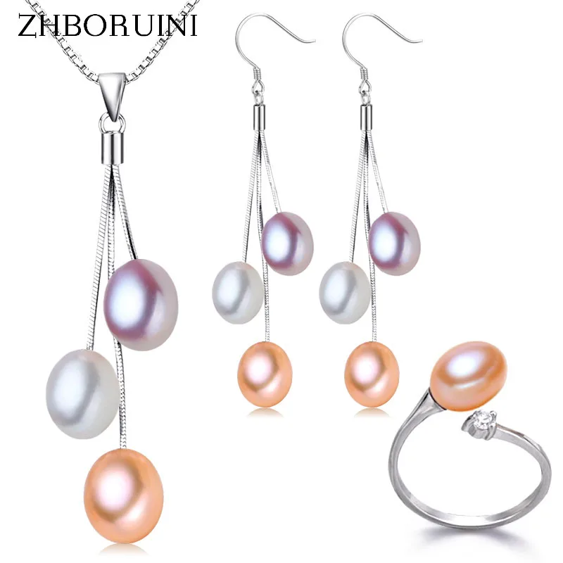 Модный комплект ювелирных изделий ZHBORUIN из жемчуга 2021, разноцветное ожерелье и серьги из пресноводного жемчуга, серебро 925 пробы, набор украшений для женщин