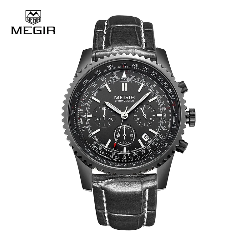 Горячая Megir повседневные Брендовые мужские кварцевые часы светящиеся секундомер для мужчин аналоговые наручные часы с календарем Мужские 2009 Бесплатная доставка