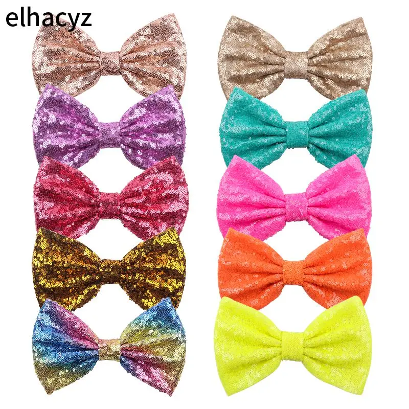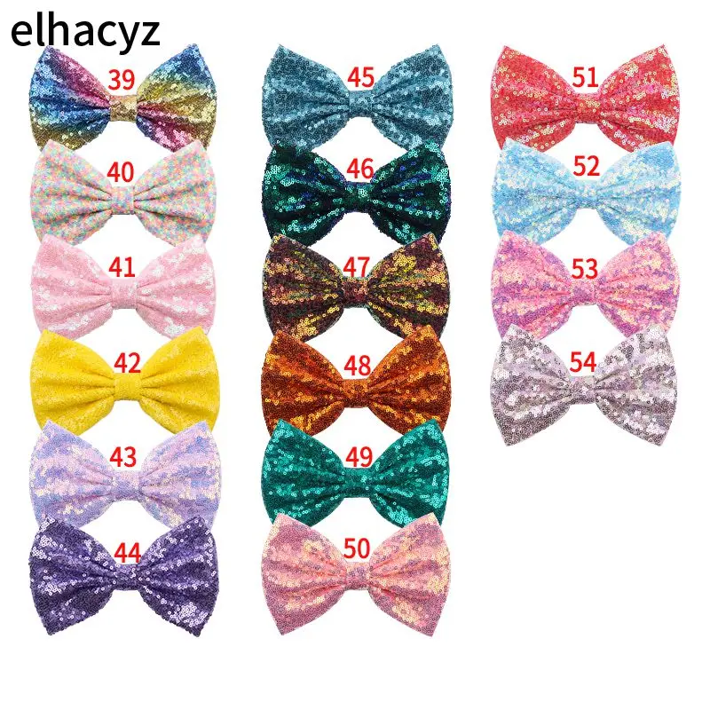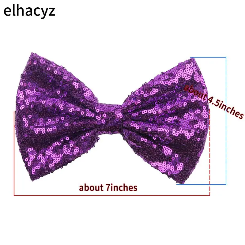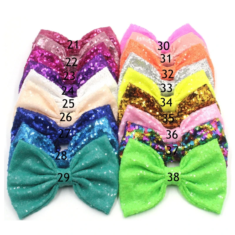 25 шт.лот 7 "супер большие банты с пайетками для повязки на голову 54 Цвета бант для волос сбез заколки для волос аксессуары для волос