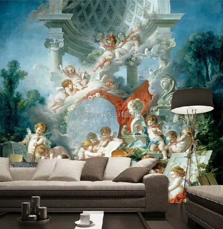 Обои в европейском стиле панно с ангелом, 3D масляная живопись, эффект масляной живописи, настенные фрески на заказ, обои для гостиной, дивана, рулон Фотообоев