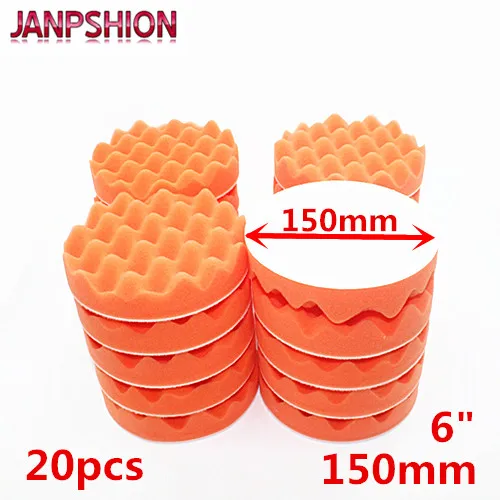 JANPSHION 20 шт. 150 мм волнистая губка, полировщик для автомобиля, буферные площадки для полной полировки, Полировочная подушечка 6 "для очистки воском, обслуживания краски автомобиля