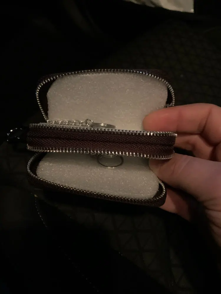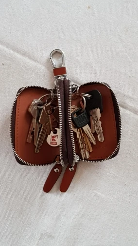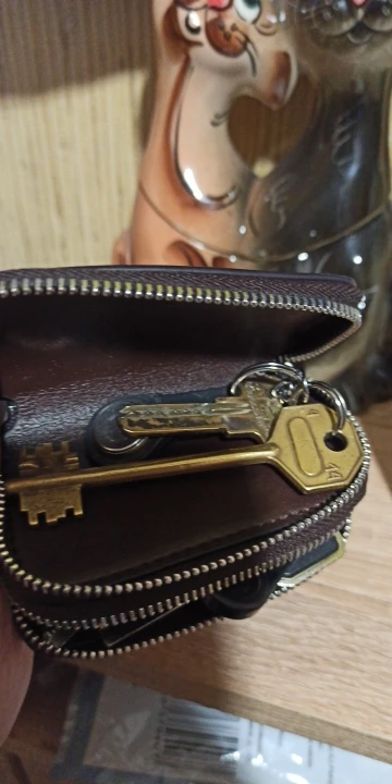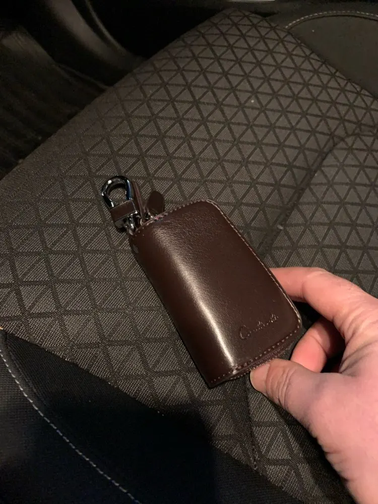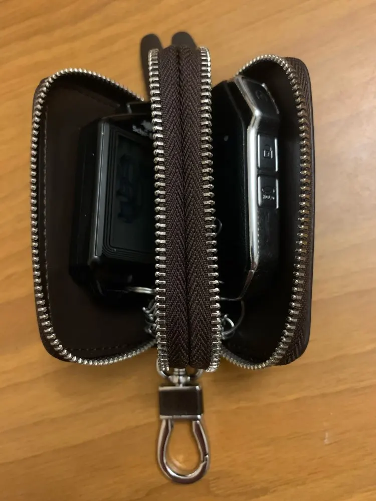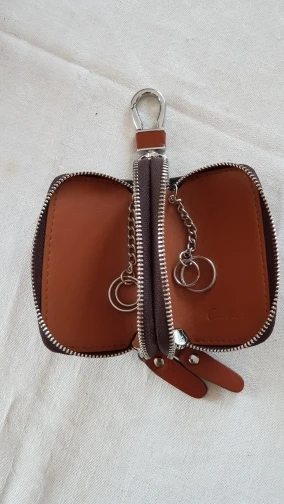 Хорошего качества. Очень удобен в использовании. В одном отделении ключ от машины, в другом ключ от сигнализации.