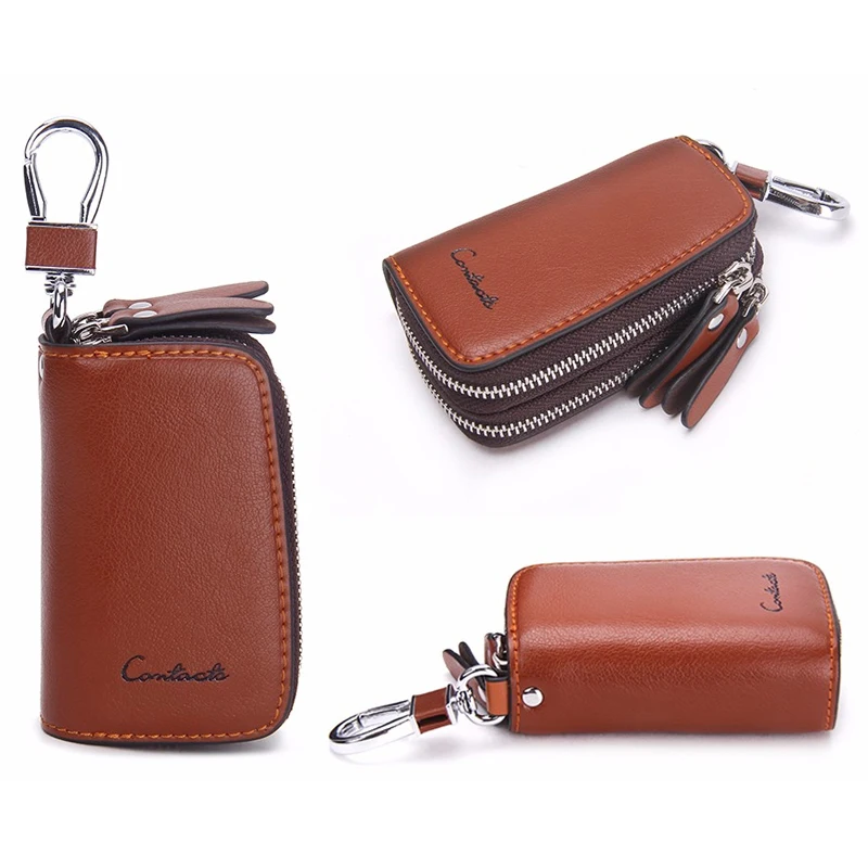 CONTACT'S классическая многофункциональная сумка из натуральной кожи для хранения ключей двойным замочком дизайн Автомобильный ключ держатель 2019