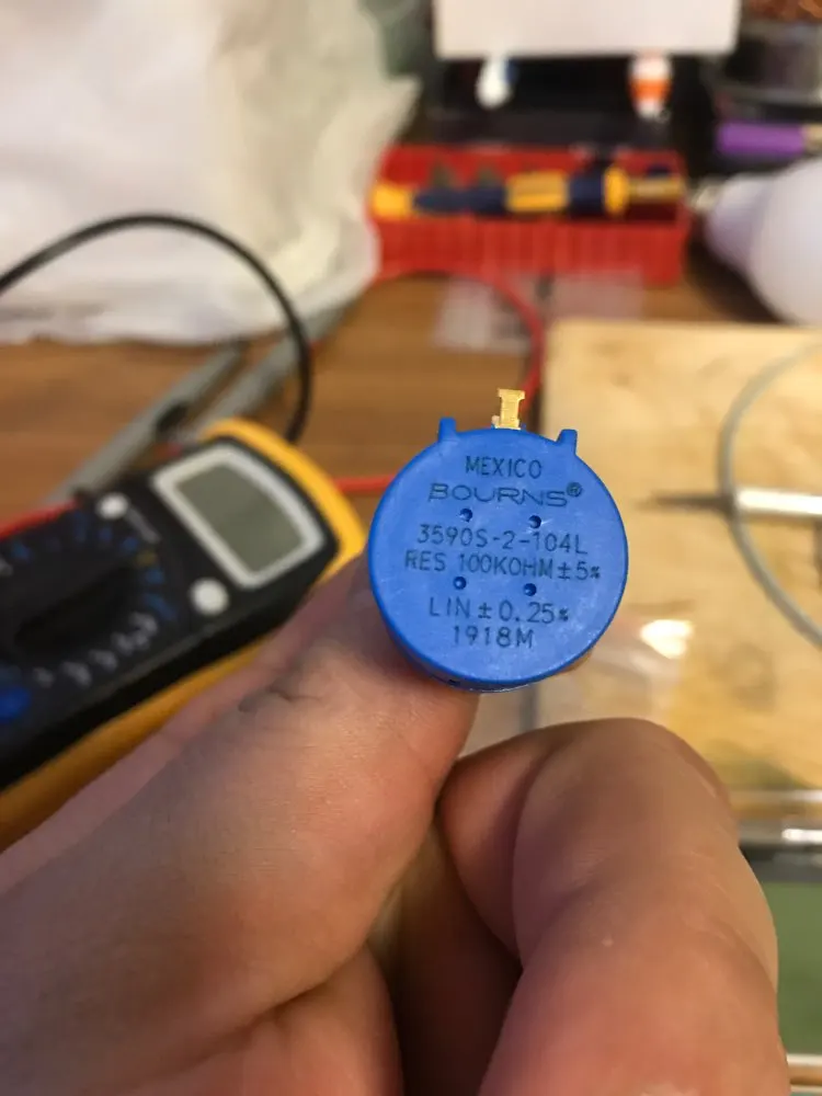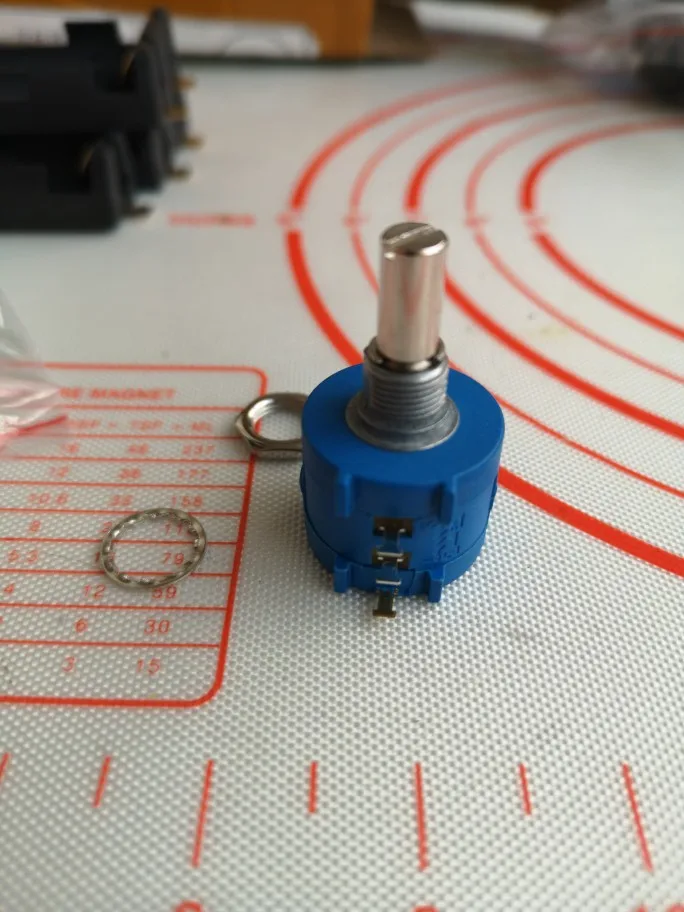 Отличный многооборотный резистор. Брал для лабораторного БП от Гайвера. Стандартные колпачки из Китая не налезают. Надо рассверливать. Диаметр крутилки 6,3мм, а колпачок внутри 6мм + шлицы.