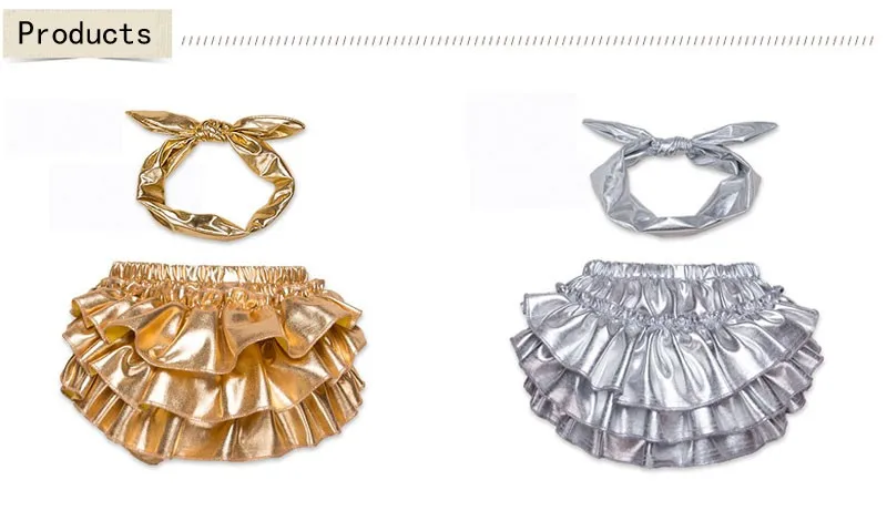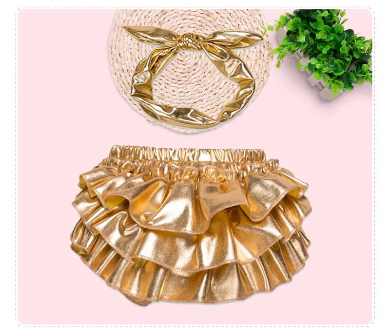 Штанишки для новорожденных Золотые шорты + повязка на голову 2 шт.компл. рюшами кожаные мужские туфли, цвет серебристый, PP для девочек шаровары брюки для детей ясельного возраста с ромбовидным узором
