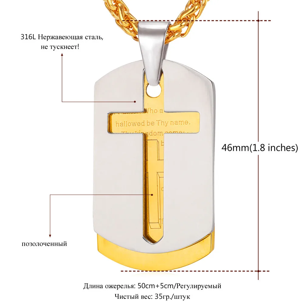 U7 Библия Крест Кулон Цепь Из Нержавеющей Стали Позолоченный Серебряный Черный Цвет Мужской Ювелирное Украшение Господня Молитва Ожерелье Dog Tags Men Мода Подарок P682