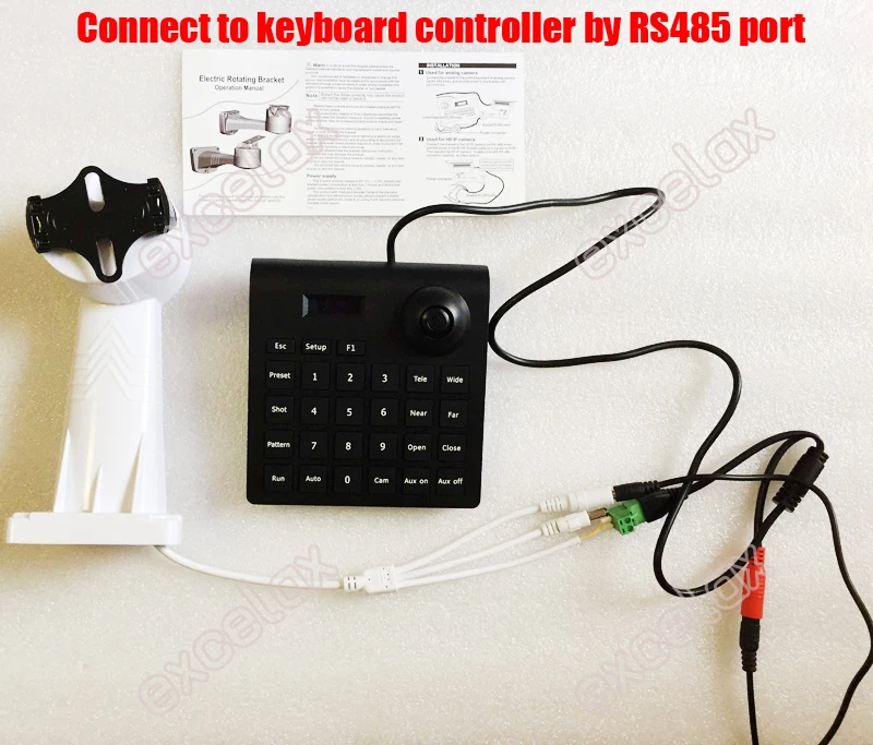 1. Этот кронштейн очень прост в использовании. Сначала Включите кронштейн. Подключите его к порту RS485 вашего DVR, контроллера клавиатуры, CCTV тестера или другого оборудования через соединение кронштейна RS485. Управляйте кнопками направления или джойстиком на видеорегистраторе или контроллере клавиатуры, чтобы контролировать горизонтальный кронштейн и вертикальное движение.