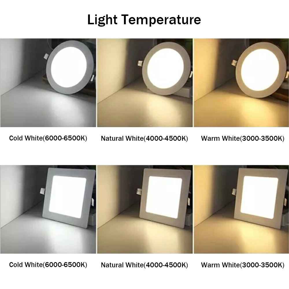 Круглаяквадратная Встраиваемая панельная лампа DBF, кухонный потолочная лампа для ванной, Встраиваемый светодиодный Светильник направленного света теплогохолодногоестественного белого света, 85-265 в
