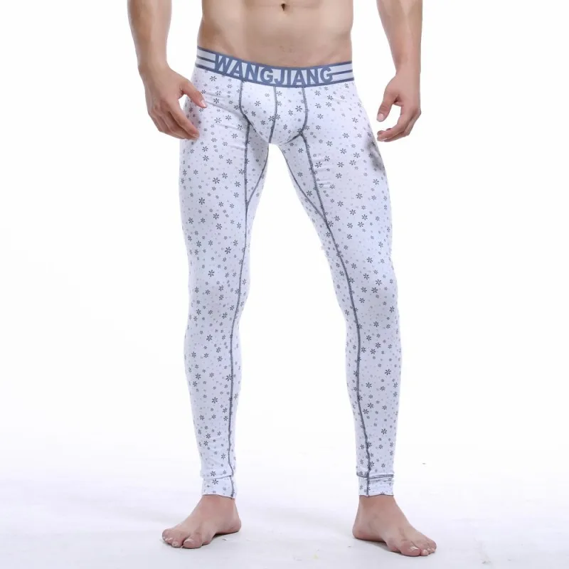WJ Брендовые мужские теплые брюки, облегающие тонкие леггинсы в народном стиле с принтом, мужские кальсоны 5005CK