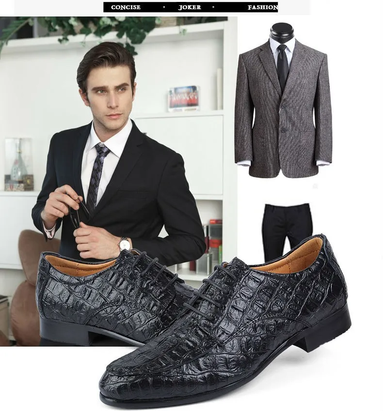 Туфли-оксфорды мужские из натуральной крокодиловой кожи, на шнуровке, большие размеры 39-50