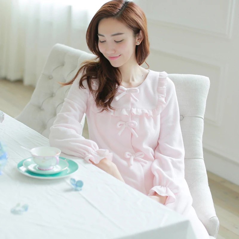 Женский флис ткань утепленная одежда для сна с длинными рукавами Королевский ночная рубашка принцессы полный Длинный дизайн халат наборы для ухода за кожей