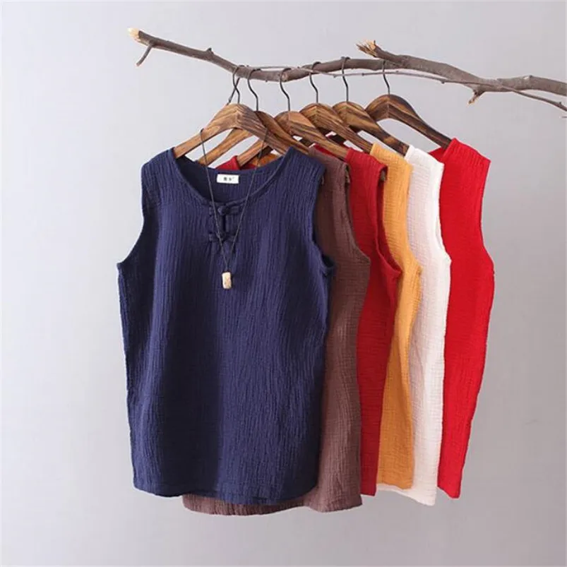 Лето 2021, женский жилет в национальном стиле, льняные хлопковые свободные майки, мягкий длинный удобный жилет с круглым вырезом, модные топы l- 6xl