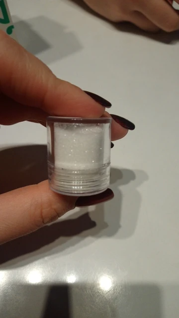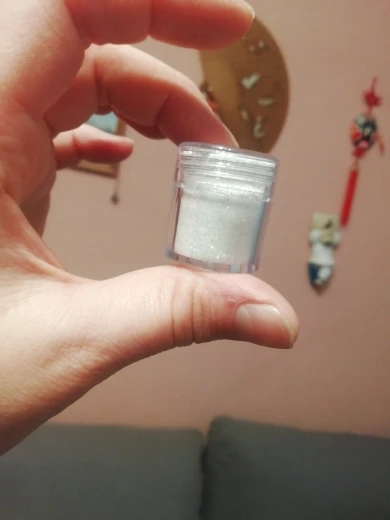 присыпка хорошая. доставка долгая около 3 месяцев. баночка маленькая