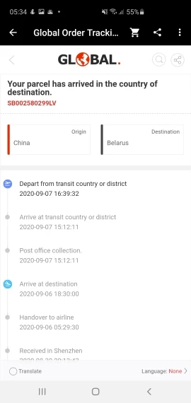 Страна: SK Доставка: Cainiao Super Economy Global 25.09.2020