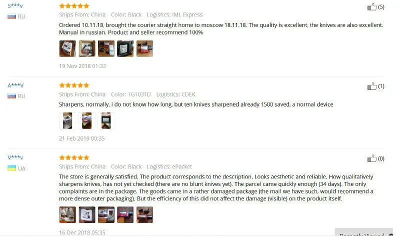 До Волгограда товар шел 43 дня. Доставлен курьером. Сразу опробовали. Набор ножей (сталь) покупали весной. Заточили, стали острыми, как новые. Грубая заточка и точная заточка. Прилагается инструкция на нескольких языках, есть русский. Очень довольна. Рекомендую.