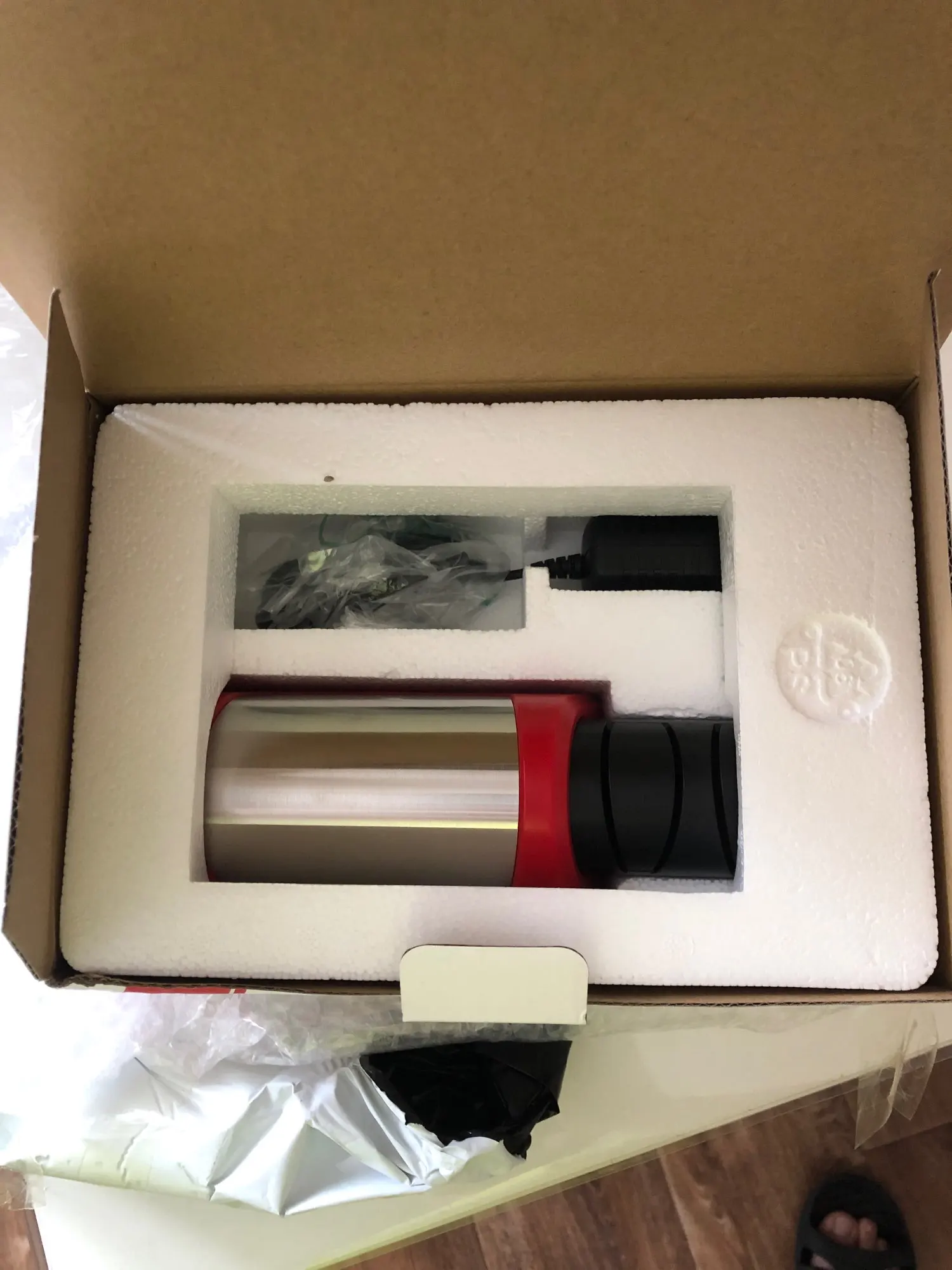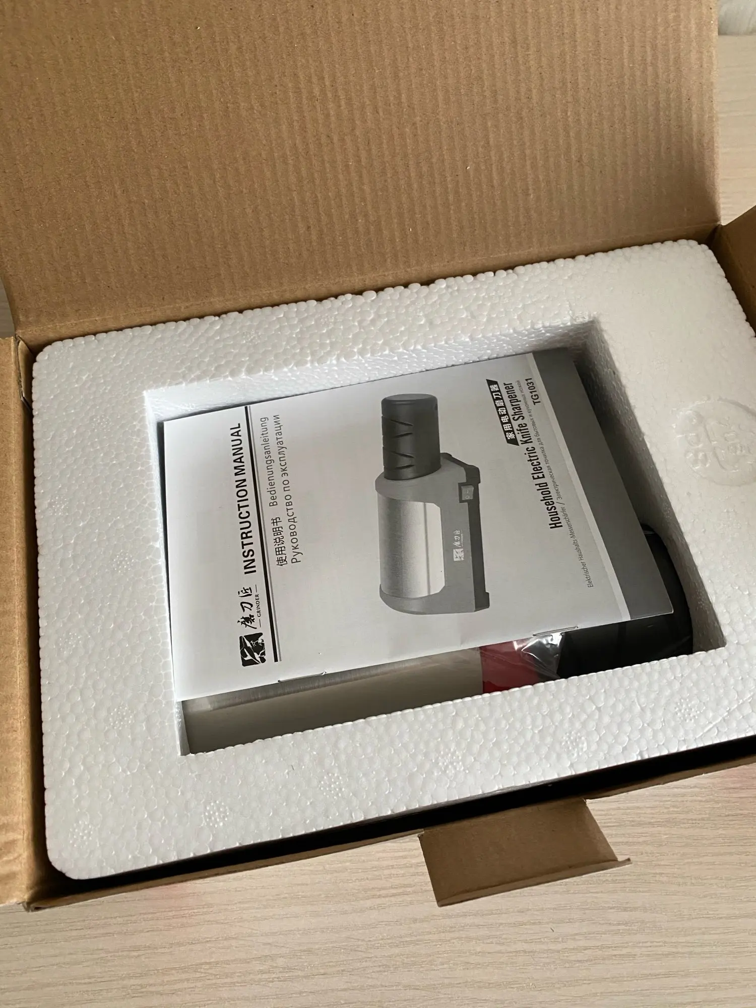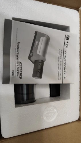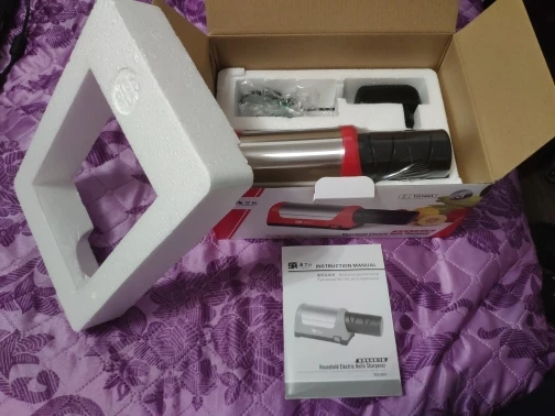 Пришло в хорошо упакованной заводской коробке, заточил один ножик за минуту, всё отлично, работает тихо, пока не понял зачем 2 отсека для заточки, если кто знает, подскажите)