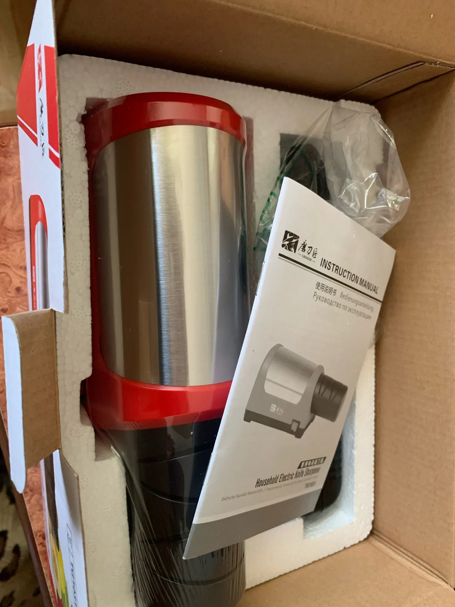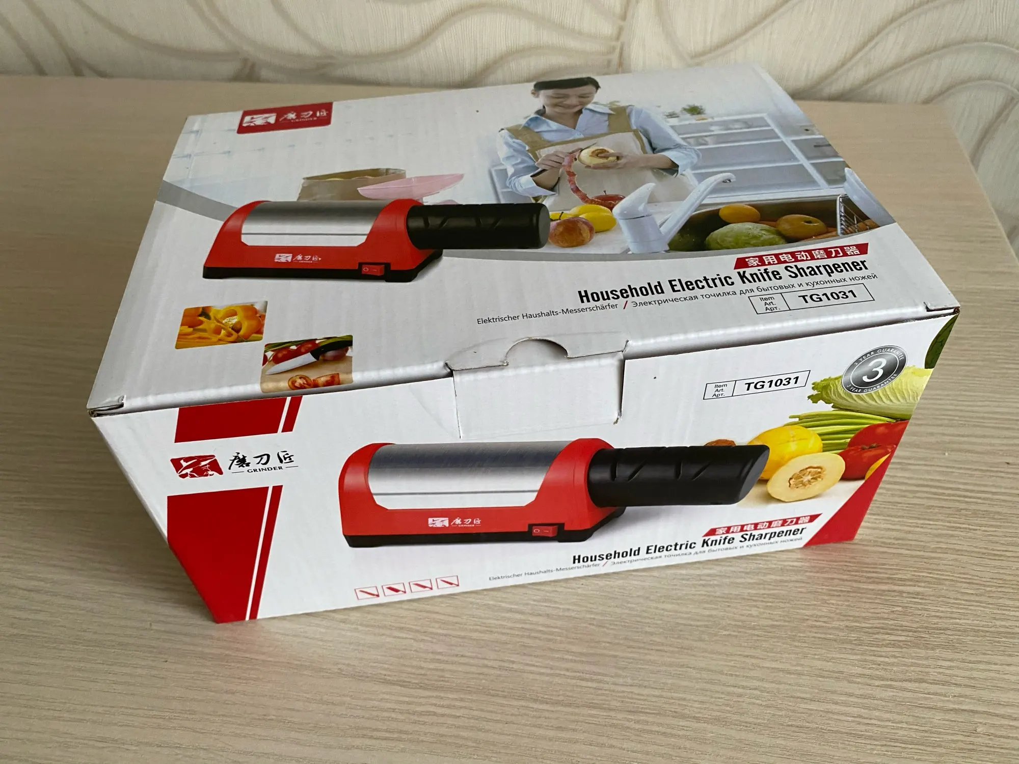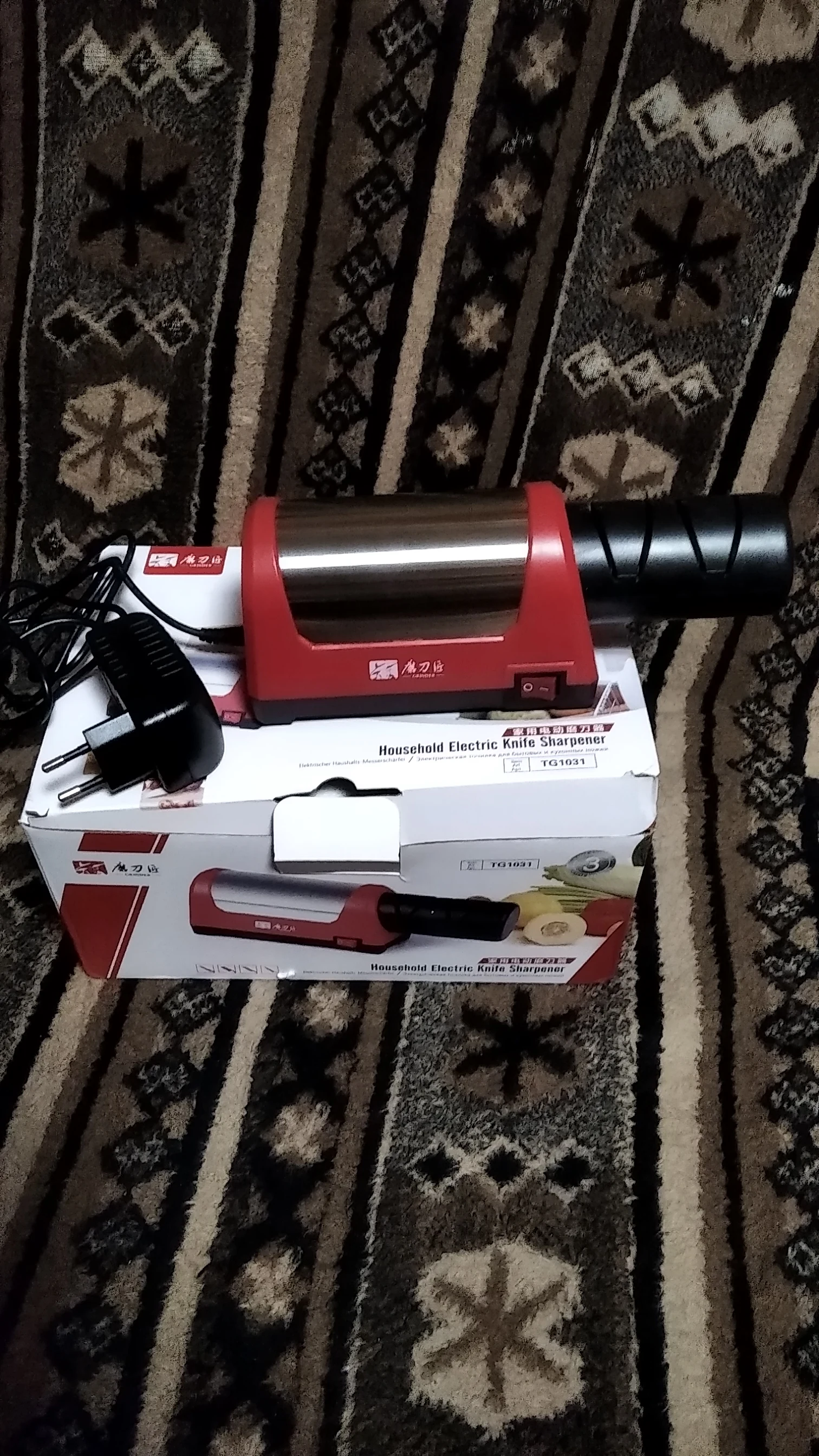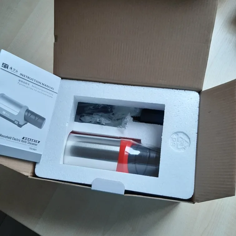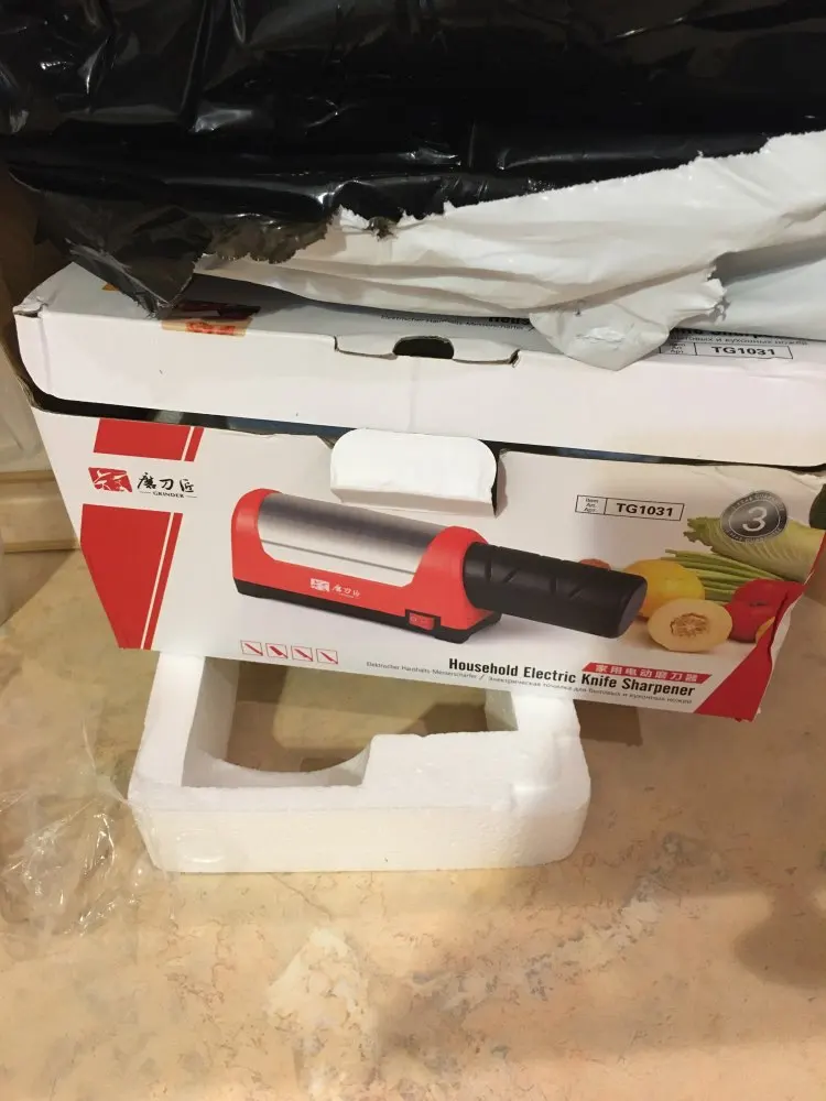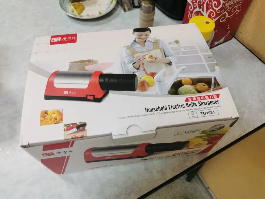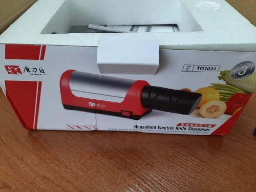 Запакован в приличную коробку (можно на подарок), есть инструкция на русском языке, питание адаптером 12 В с длиной провода 1.5 метра. При заточке хорошо фиксируется на столе, не скользит (резиновые ножки). Даже самый убитый нож на кухне выправил большим количеством проходов в пазах #1, в дальнейшем можно будет только подправлять своевременно в пазах#2. Конечно не меч самурая, но для кухни самое то. Брал в подарок матери (пожилая но должна справиться), теперь подумываю и себе облегчить жизнь (я лентяй) В общем рекомендую))