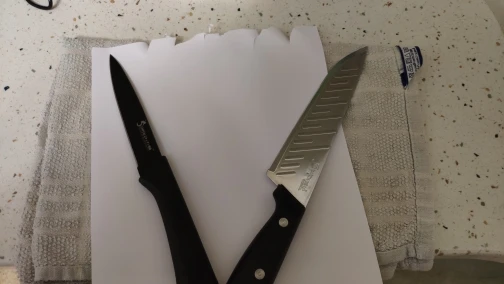 Envoi en 7 jours malgré les Fêtes de fin d’année. Article de qualité, les couteaux coupent comme des rasoirs une fois aiguisés. Vendeur à recommander