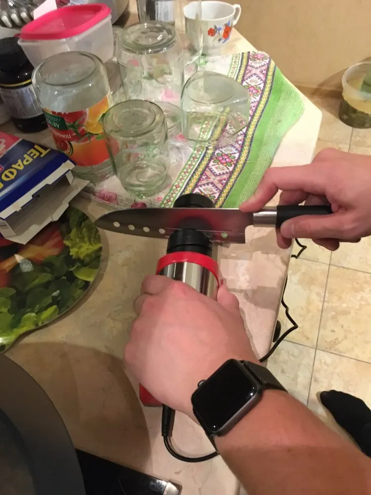Мне все понравилось, для дома точит замечательно. Тех кто ожидает что после заточки можно будет резать бумагу одним движением - не очень понимаю. Вам ребята на мокрые камни с очень мелкими шагами, и целый день у вас будет мега острый нож, после 40 минут правок и мучений. Эта же штука за 30 сёк даёт просто отлично наточенный нож. Про мощность тоже интересно, какие тяпки кто там точит, мне хватает полностью, хорошая мощность и скорость вращения.