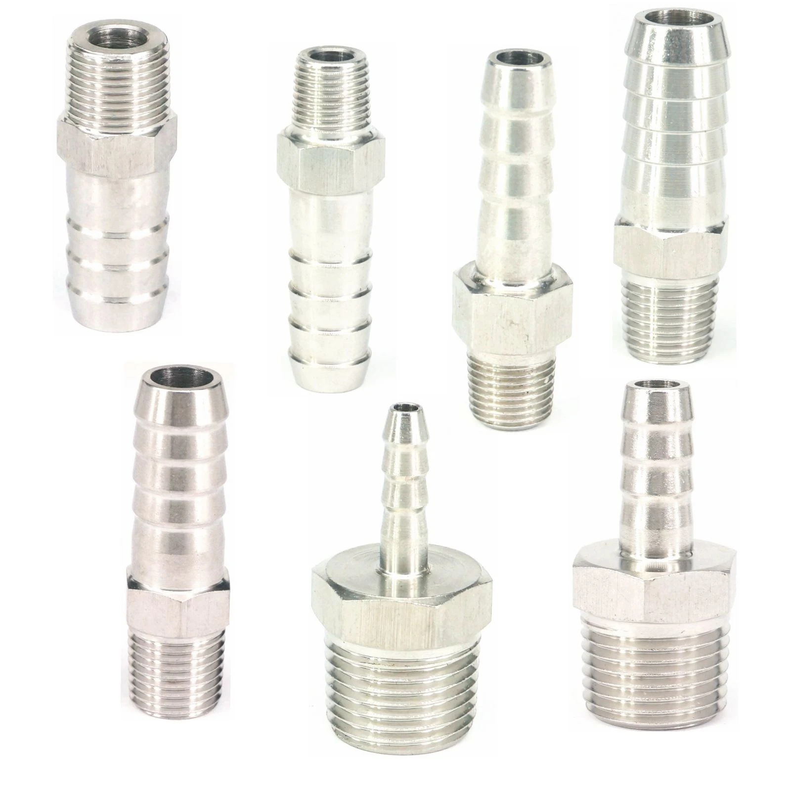 Подходит для шланга ID 6810121416 мм с зазубринами x 18 дюйма, 14 дюйма, 38 дюйма, 12 дюйма, BSPT Male 304, соединитель из нержавеющей стали, фитинг для топлива, газа, воды