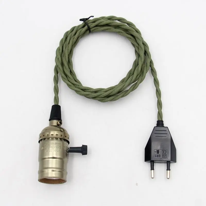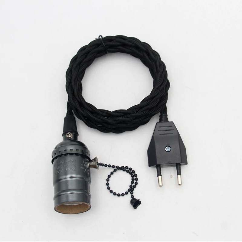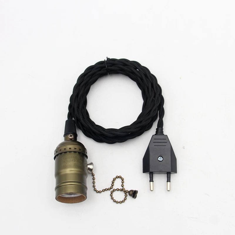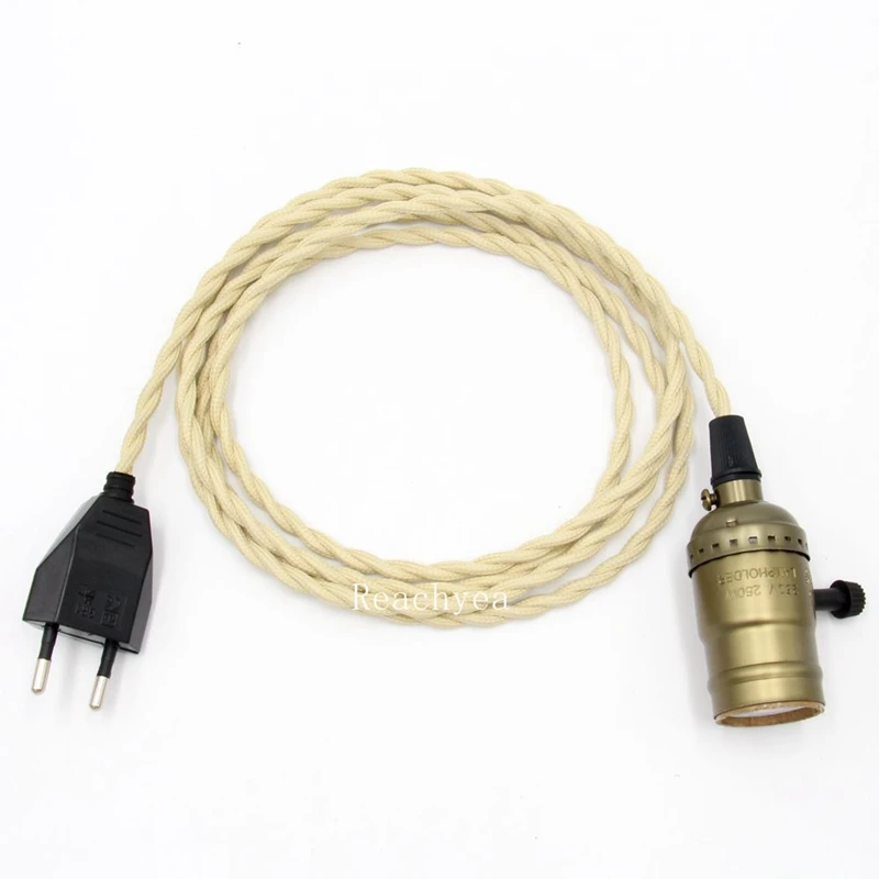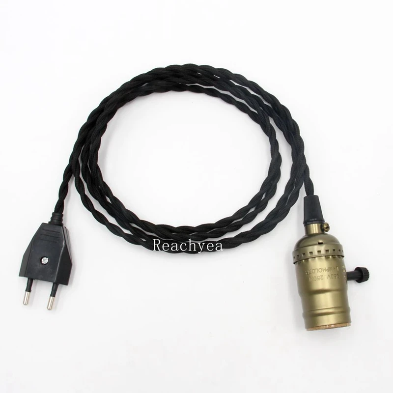Вилка европейского стандарта, шнур питания старинный держатель лампы с ручкой переключателя, витой кабель 2 мертера